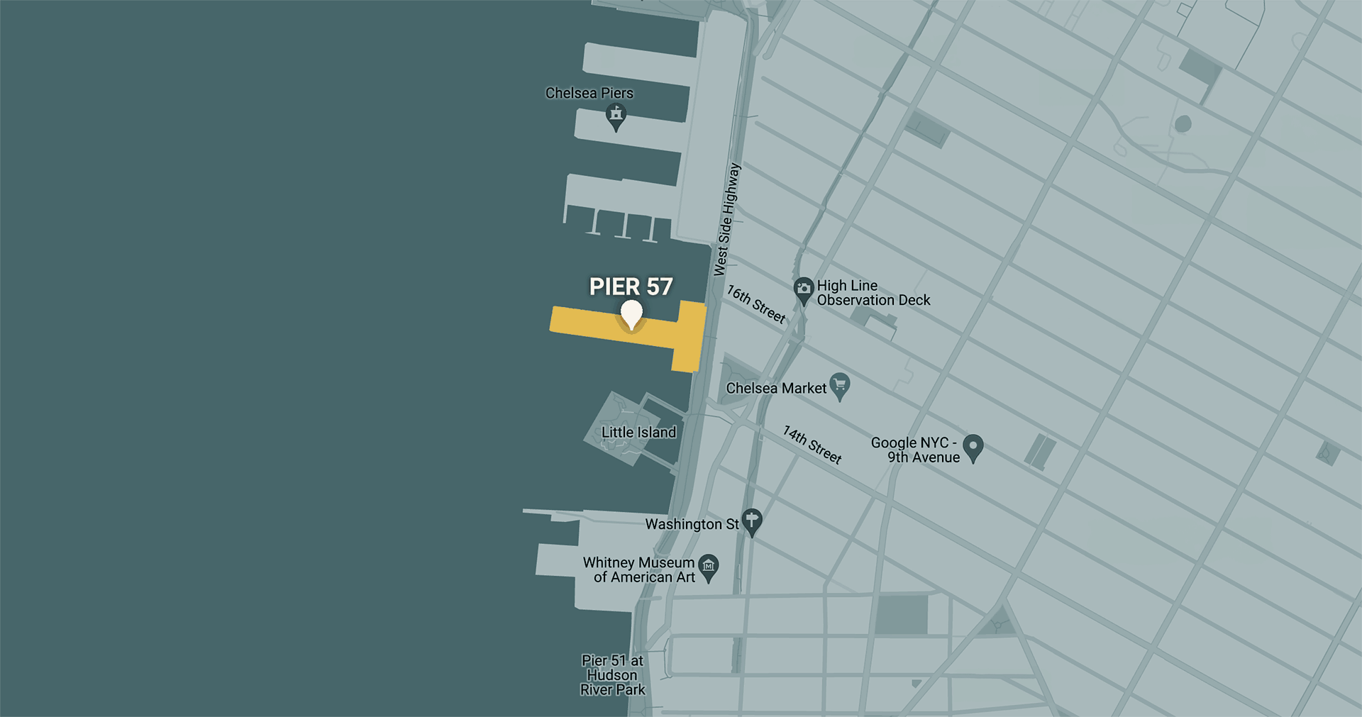 Located inside Pier 57 at Hudson River Park at the end of the Main Corridor